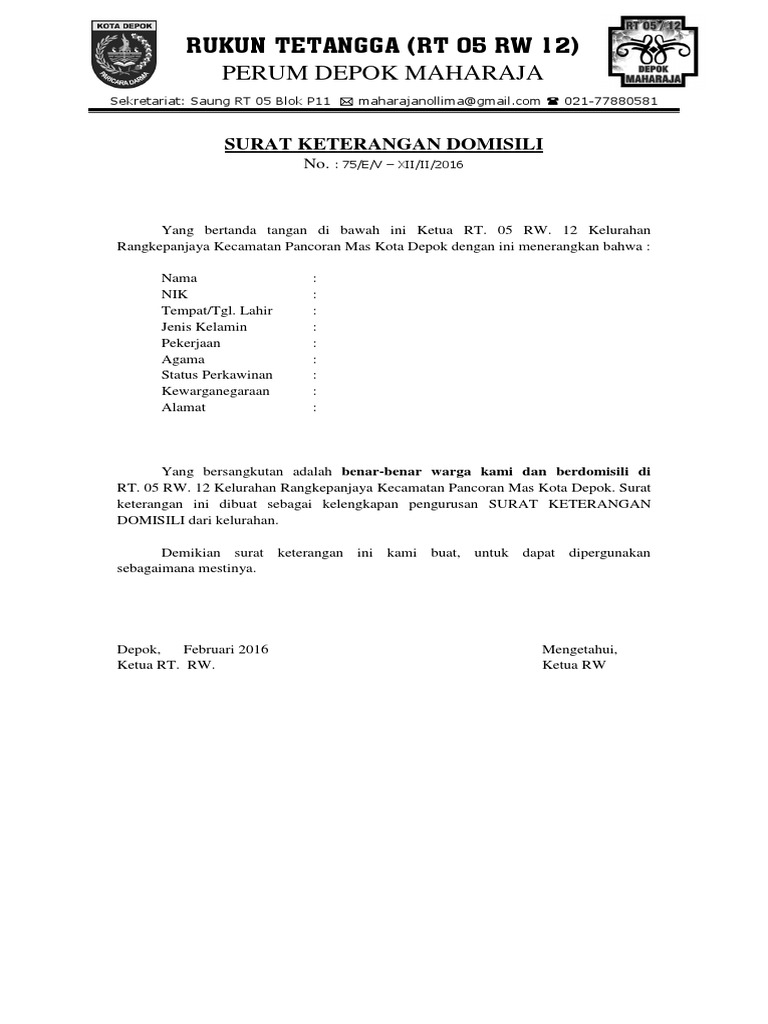 17 Contoh Surat Keterangan Domisili Kota Depok