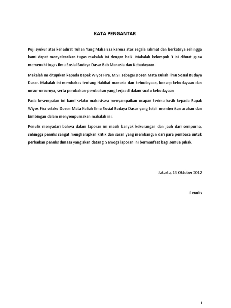 Nah struktur daftar isi tidak ada yang baku. MAKALAH ILMU BUDAYA DASAR. Melalui kata pengantar ini penulis lebih dahulu meminta maaf dan memohon permakluman bilamana isi makalah ini ada kekurangan dan ada tulisan.