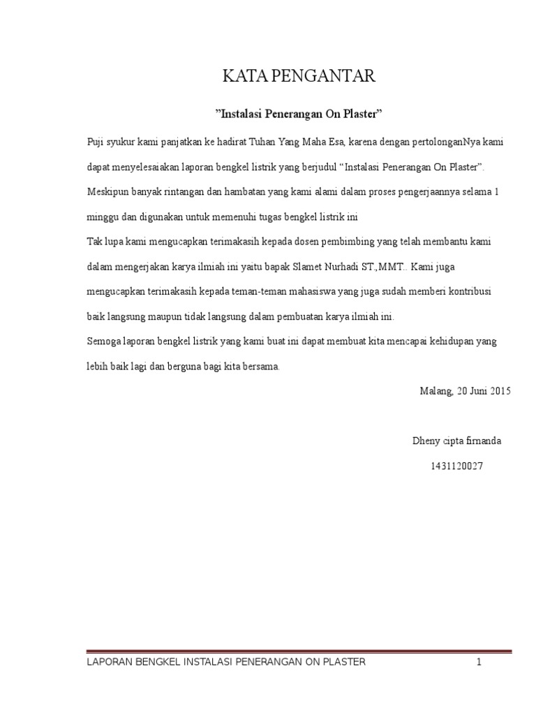 Contoh kata pengantar laporan bengkel. Shalawat dan salam semoga tetap tercurahkan kepada Rasul-Nya Muhammad SAW keluarga beserta para pengikutnya hingga akhir kehidupan dunia. Contoh Kata Pengantar Laporan PPL. Karena berkat rahmat dan karunia-Nyalah penulis dapat menyelesaikan laporan Observasi ini sesuai waktu yang telah di tentukan.