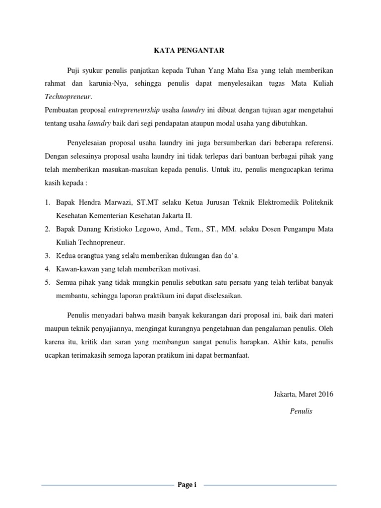 Proposal usaha Laundry ini dibuat dengan tujuan agar mengetahui tentang usaha laundry baik dari segi pendapatan ataupun modal usaha yang dibutuhkan. Contoh Kata Pengantar Proposal Usaha Portal Uang. USAHA JASA LAUNDRY MY LAUNDRY B.