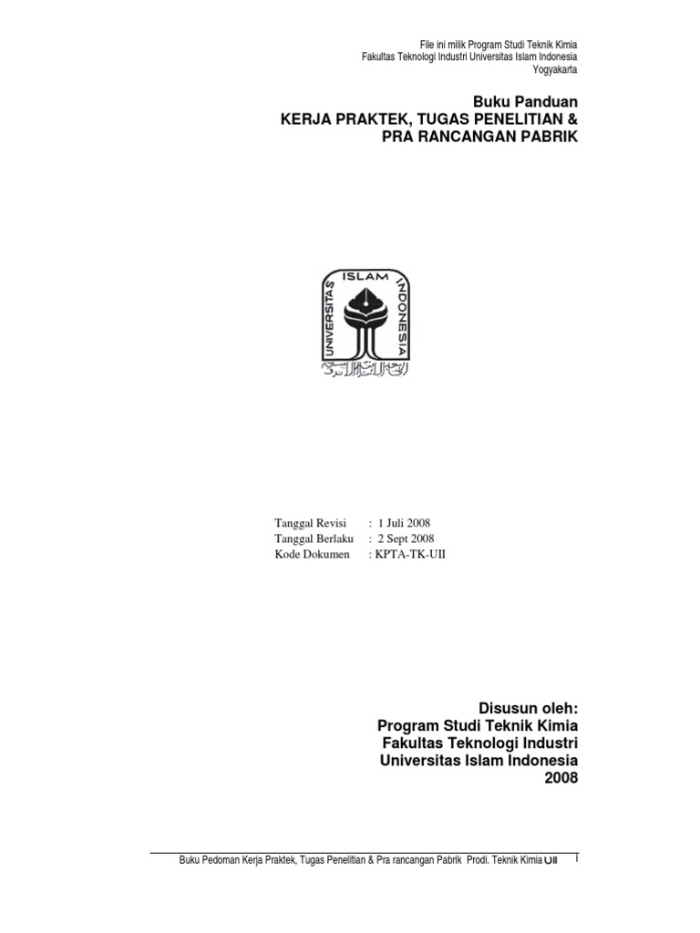 Berikut saya infokan kumpulan. Contoh Skripsi Teknik Kimia Teknik kimia merupakan suatu ilmu rekayasateknik yang mengkonversi merubah bahan-bahan baku menjadi bahanproduk jadi yang berdaya guna dan memiliki nilai tambah ekonomis melalui proses-proses kimia fisika maupun biologi skala besar. Petunjuk pelaksanaan Kerja Praktek.
