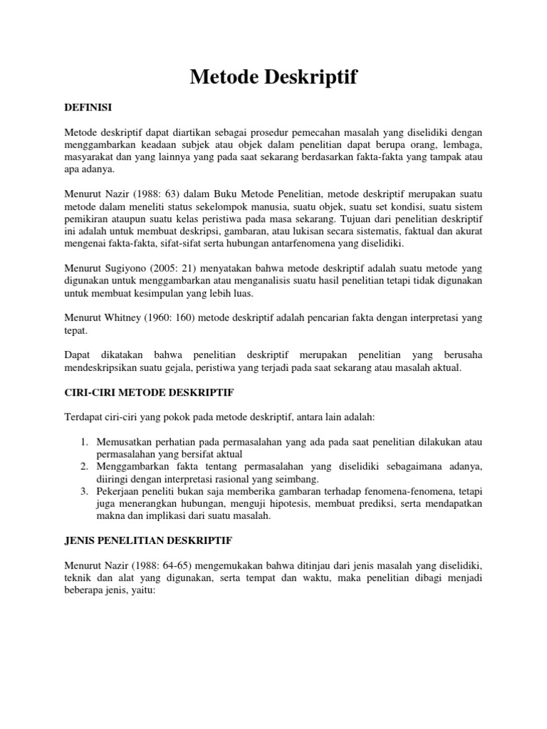Metode Penelitian Deskriptif Pengertian Contoh Kelebihan Kekurangan