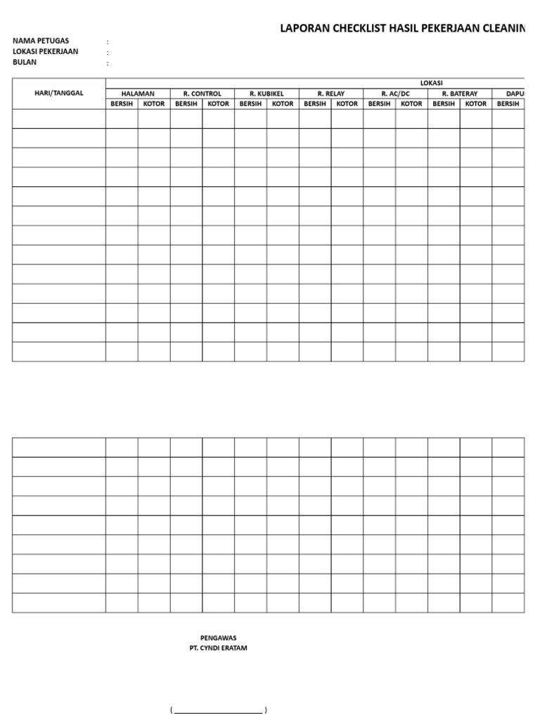Inilah contoh form check list kerja cleaning service dan hal lain yang berhubungan erat dengan contoh form check list kerja cleaning service serta aspek K3 secara umum di Indonesia. Contoh laporan bulanan cleaning service. Laporan praktek kerja dept prodiii pt.