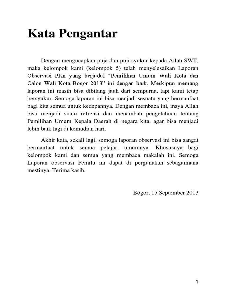 Contoh Kata Pengantar Untuk Laporan Observasi Kumpulan Contoh Laporan