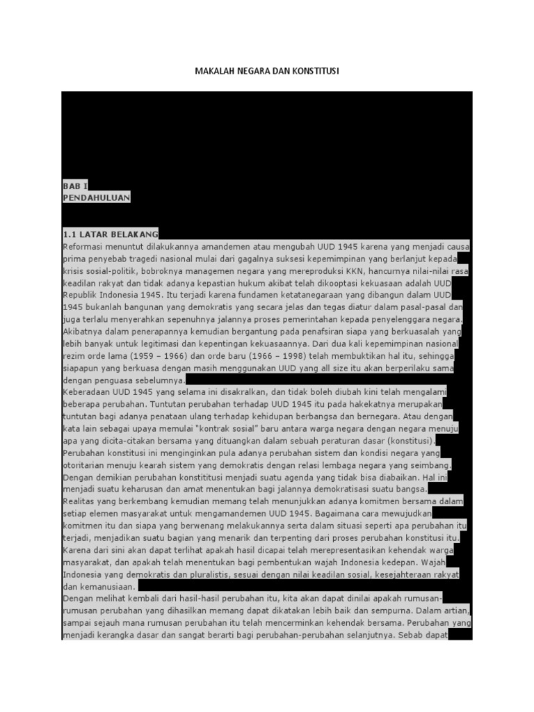 Makalah negara dan konstitusi bab i. 7 32 Kedudukan Konstitusi. Contoh Makalah Negara dan Konstitusi ini sanggup didownload dalam format document doc atau docx yaitu format file yang sanggup diedit dengan memakai aplikasi pengolah kata atau software word processor yang biasa dipakai di komputer atau laptop anda untuk mengetik yaitu seperti Microsoft Office Open Office atau pun software word processor lain contohnya untuk Android seperti Polaris Office Microsoft Office Mobile Kingsoft Office dan.