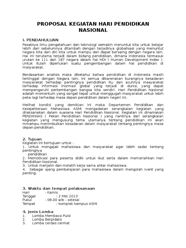 Pemasukan dikurangi pengeluaran. PERINGATAN HARI PENDIDIKAN NASIONAL. Contoh proposal kegiatan hari pendidikan nasional Contoh Proposal Kegiatan Hari Pendidikan Nasional Wednesday July 17 2019 contoh proposal kegiatan hari pendidikan nasional Edit.