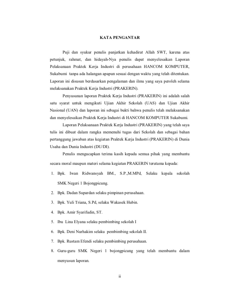 Kata Pengantar Laporan Prakerin