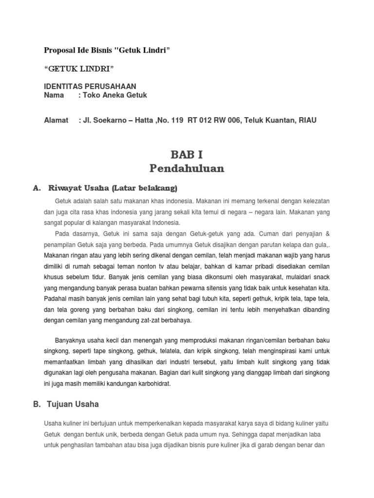 Proposal Ide Bisnis Getuk Lindri Docx