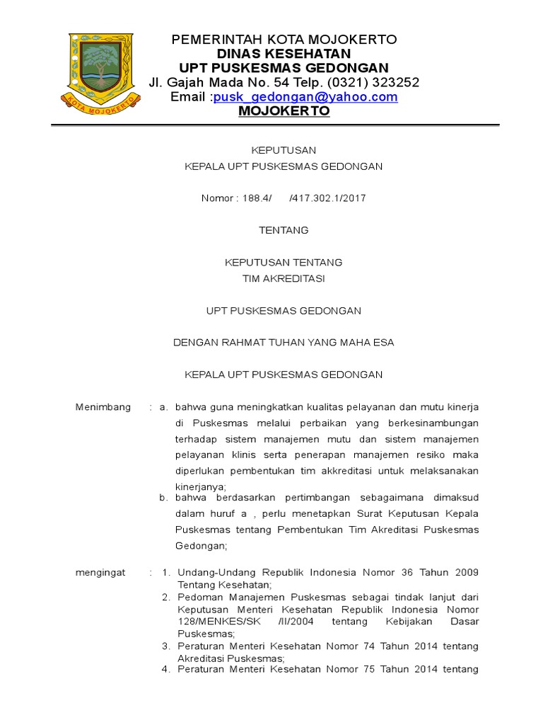 Contoh Sk Tim Akreditasi Puskesmas Ilmusosial Id