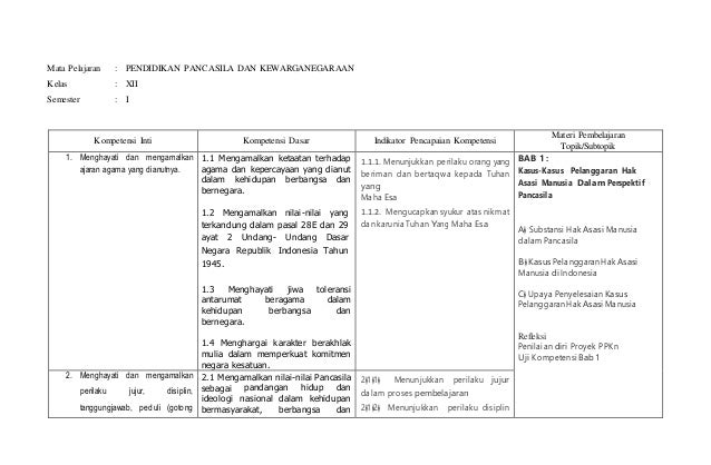 Pemetaan Ki Dan Kd Pkn Kelas 12 Sma Kurikulum 2013 Revisi 2018