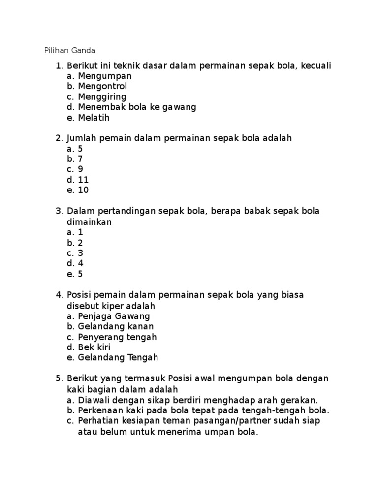 Pandai menendang bola b. Hanya kiper yang diperkenankan menggunakan tangan. Teknik Dasar Sepak Bola.