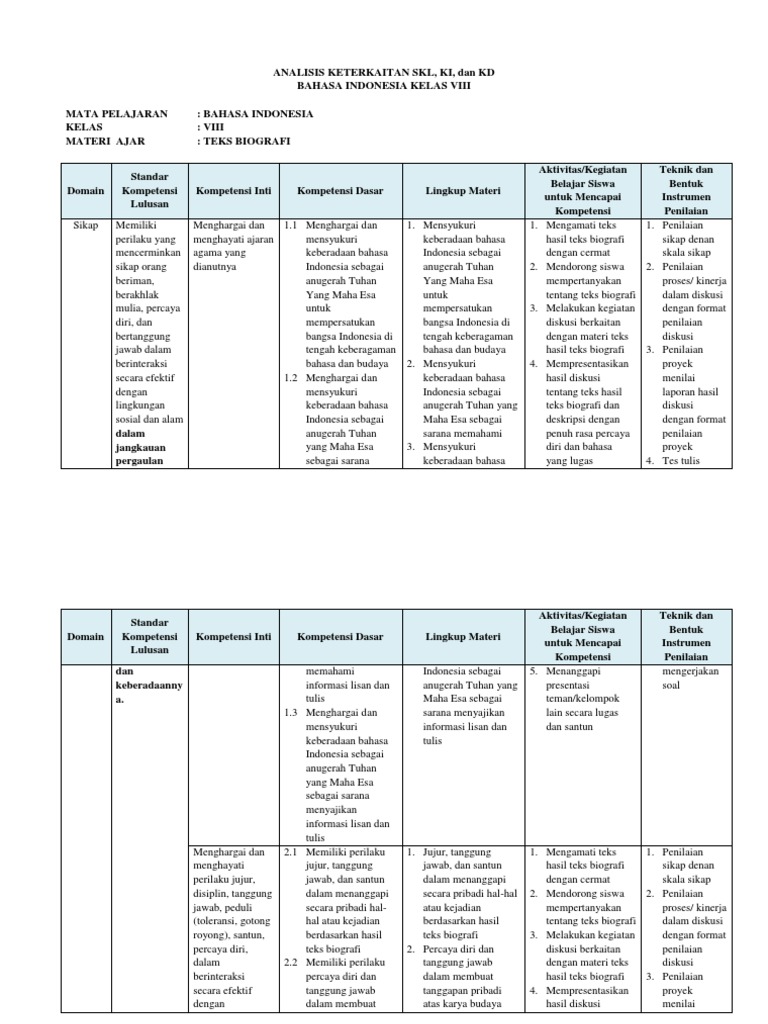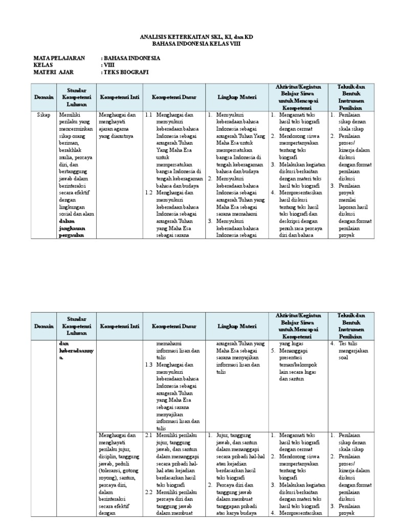 Analisis Keterkaitan Skl Ki Kd Bhs Indonesia Viii 1