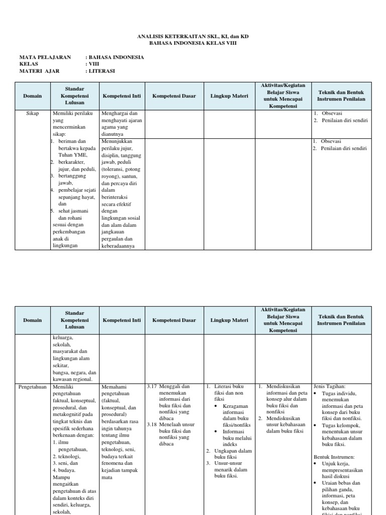Analisis Keterkaitan Skl Ki Kd Bhs Indonesia Viii 9