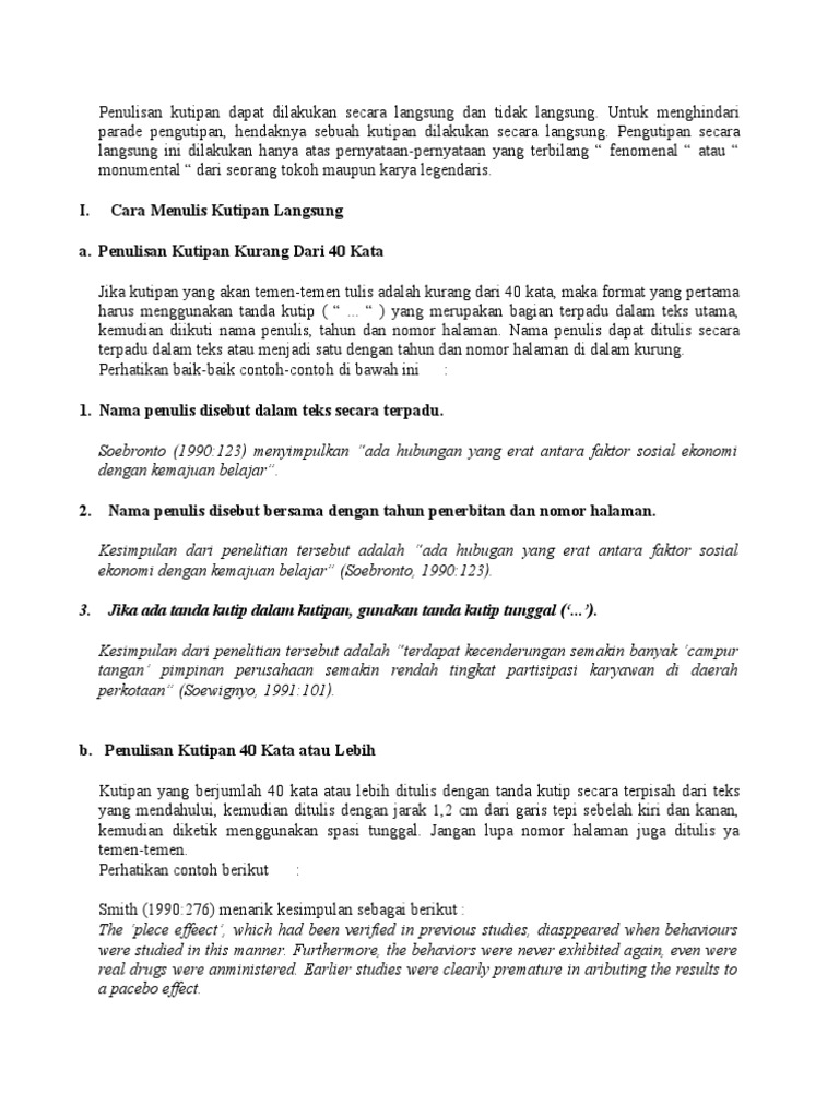Contoh dan cara menulis kutipan langsung. Format penulisan kutipan harus sama dengan format yang dipakai pada penulisan daftar referensi. Referensi atau Daftar Pustaka. Caranya juga sama dengan.