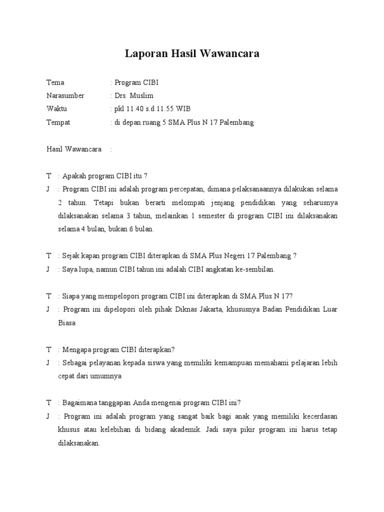 Contoh Laporan Hasil Wawancara Tentang Pendidikan Kumpulan Contoh Laporan
