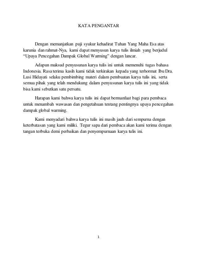 Contoh pendahuluan karya tulis ilmiah tentang global warming. Latar Belakang Latar belakang disusunnya makalah ini adalah untuk memenuhi tugas yang telah diberikan oleh dosen pengajar. Masalah lingkungan menjadi salah satu topik yang hangat untuk dibahas. Secara terperinci tujuan dari karya ilmiah ini adalah.