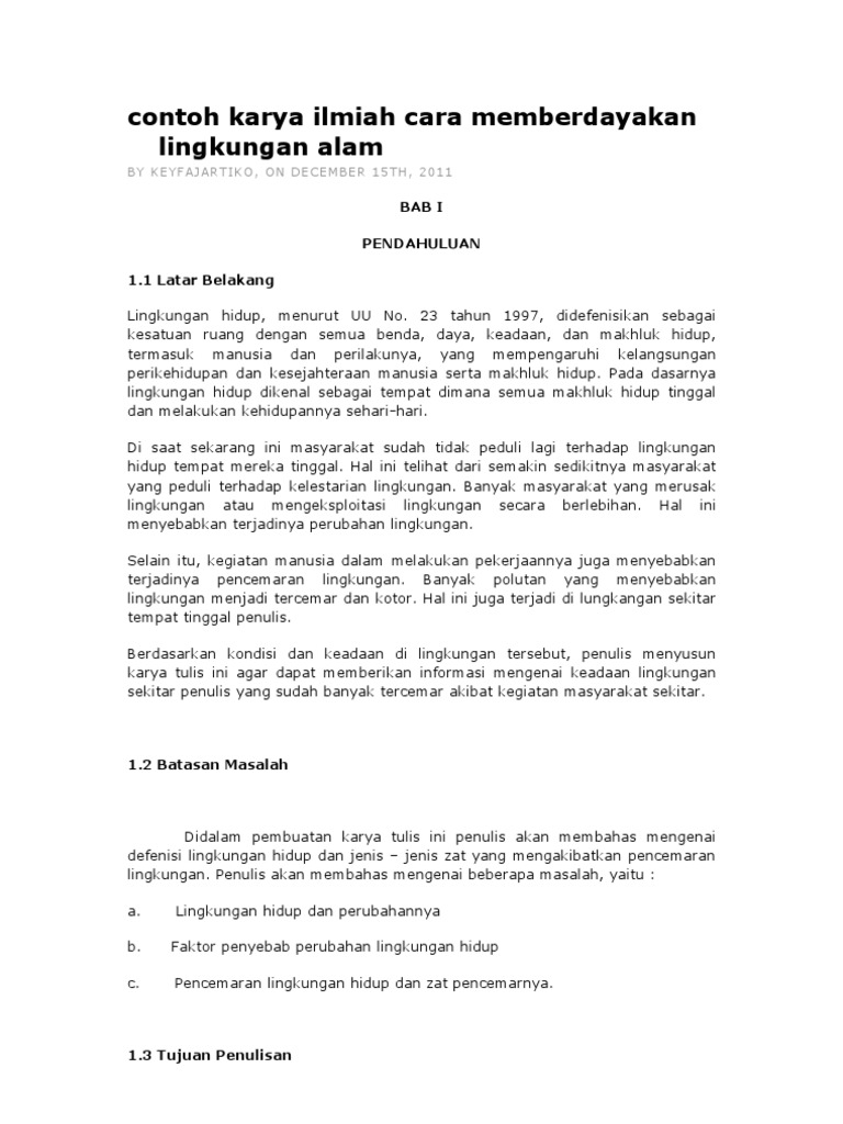 Contoh Karya Ilmiah Cara Memberdayakan Lingkungan Alam