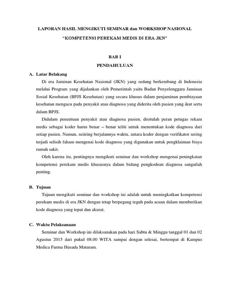 Contoh pendahuluan laporan seminar. Berikutnya adalah contoh laporan kegiatan pelatihan. Contoh Laporan Wawancara Yang Ditulis Dalam Bentuk 4 Contoh Laporan Perjalanan. Contoh Laporan Hasil Seminar Budaya Literasi untuk Generasi Emas bagi Guru Pembelajar.