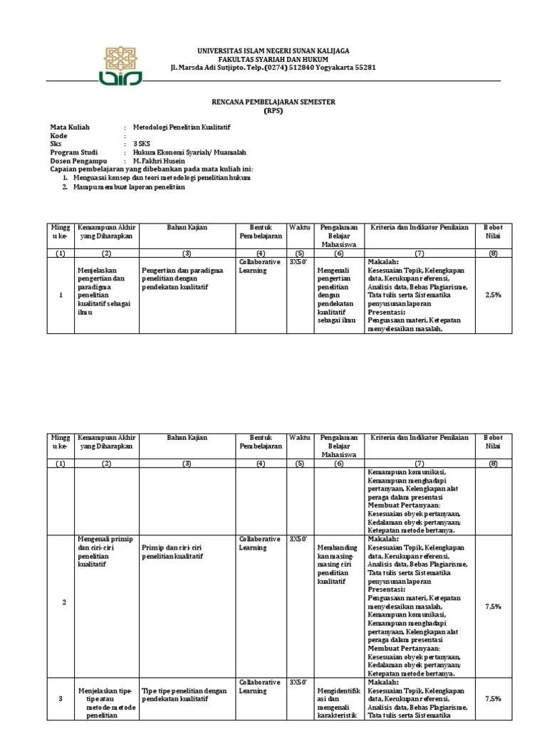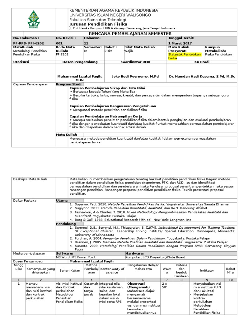 Khatib RPS Research 1 of 10 SILABUS RENCANA PEMBELAJARAN SEMESTER RPS Mata Kuliah. Semester RPS yang nantinya dapat dipedomani seluruh mahasiswa terutama mahasiswa bidang eksakta pada umumnya dan Biologi pada khususnya. Metode Penelitian Sosial Jakarta.