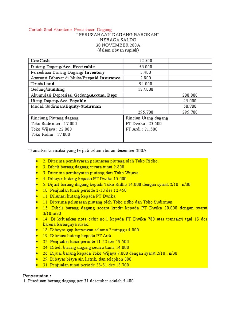 30 Contoh Soal Akuntansi Perusahaan Dagang Jawabannya