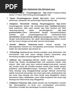 Penyelenggaraan Kesehatan Haji by pjj_kemenkes 12129 views. Kisi-kisi tersebut berdasarkan pengalaman saya pribadi saat mengikuti test petugas haji tahun 2017 dan sudah saya perbaiki berdasarkan perkembangan peraturan yang berlaku. Mukomuko Inmas Kasi Penyelenggara Haji dan Umrah PHU Kantor Kementerian Agama Kab.