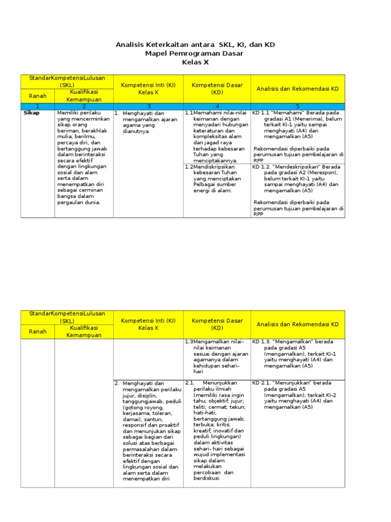 Analisis Keterkaitan Antara Skl Ki Dan Kd Kurikulum 2013