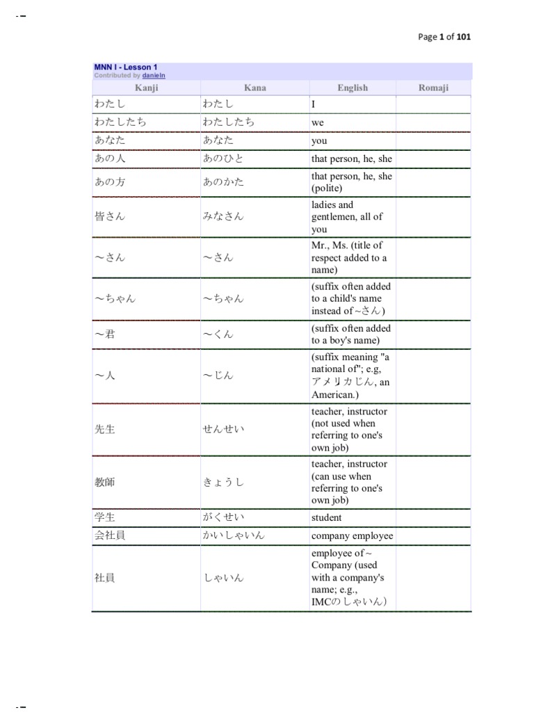 Download Minna no Nihongo 1 vocabulary PDF. Download View Minna no Nihongo 1-25-Japanesepdf as PDF for free. Coursebook for Minna no Nihongo series Japanese version Seek for the English translation grammatical notes soon.