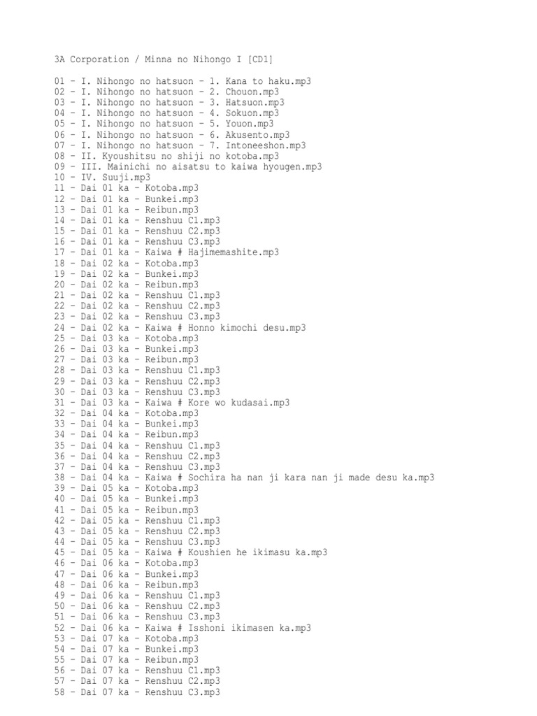 Minna No Nihongo I Ii Cd Tracklist Linguistic Typology Linguistics