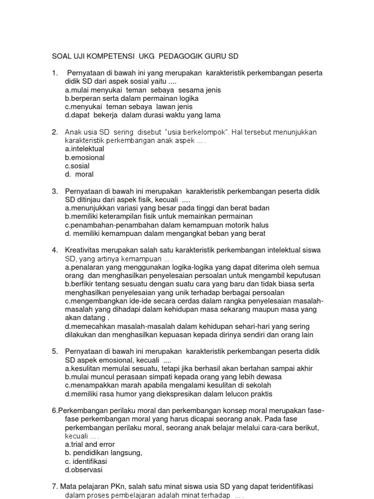 Soal Uji Kompetensi Ukg Pedagogik Guru Sd
