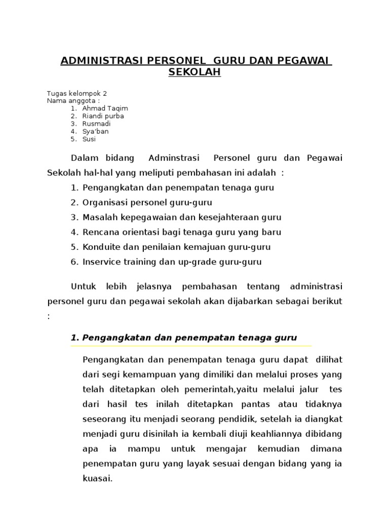 Doc Administrasi Personel Guru Dan Pegawai Sekolah Lita Situmorang Academia Edu