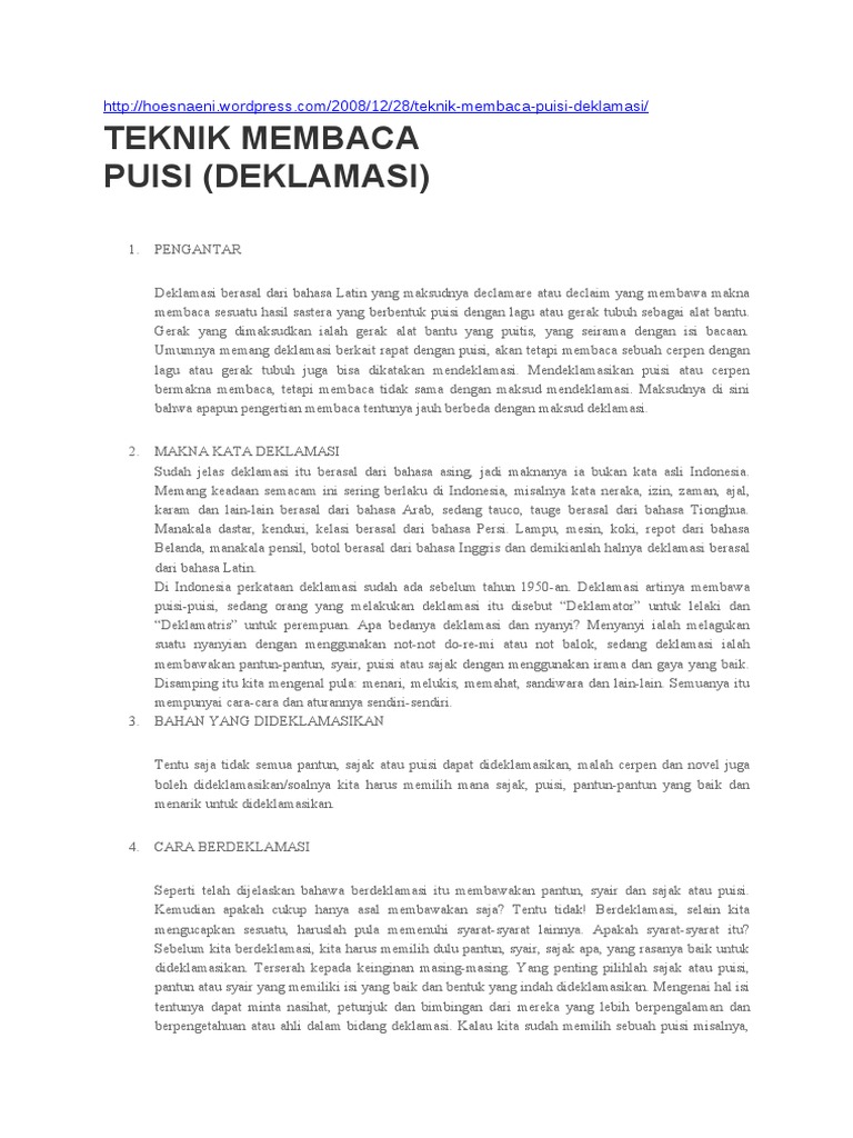 Contoh deklamasi puisi. Pahami isi puisi yang akan dibacakan 2. Pembacaan puisi disebut juga deklamasi. Hai adik-adik kelas 4 SD kali ini Osnipa akan membahas materi Cara Mendeklamasikan Puisi.