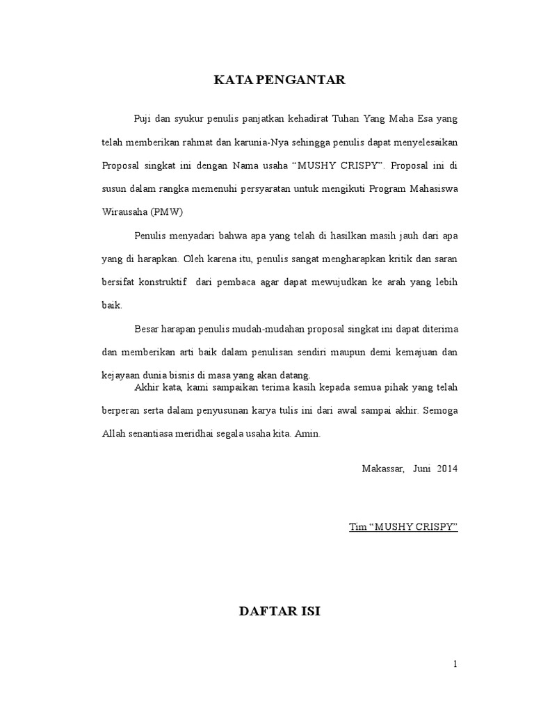 Contoh Kata Pengantar Menyusun karya tulis ilmiah memang susah-susah gampang. Kata pengantar proposal usaha berisi dorongan agar pembaca terus membaca proposal tersebut hingga tuntas. Komisi Pemberantasan Korupsi Kpk dan Bursa Efek Indonesia BEI dan.