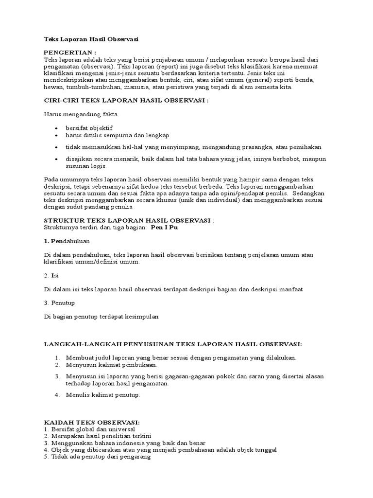 Teks laporan hasil observasi memuat informasi yang disajikan harus sesuai dengan. Soal Tentang Teks Laporan Hasil Observasi Rizky Rustanto Tugas Remedial Bahasa Indonesia Nama. Jelaskan fungsi Teks Laporan Hasil Observasi.
