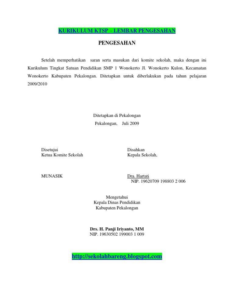Contoh Lembar Pengesahan Kurikulum 2013 Dan Ktsp