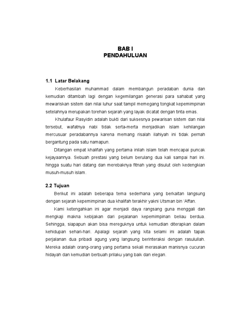 Makalah lengkap utsman bin affan. Utsman adalah seorang yang saudagar yang kaya tetapi sangatlah dermawan. Khalifah ketiga adalah Utsman bin Affan. Nama lengkap beliau adalah Utsman bin Affan Al-Umawi Al-Quraisyi berasal dari Bani Umayyah.