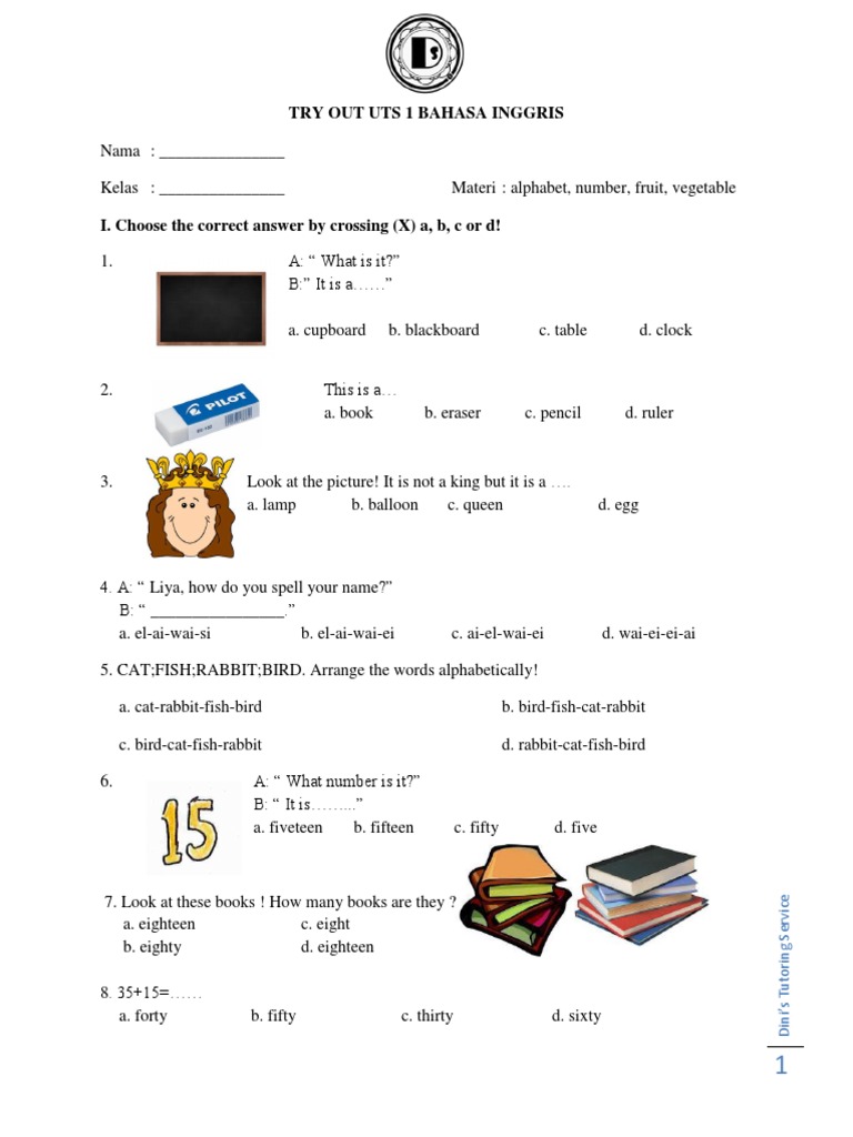 Inggris SD Semester 1 Kelas 3 Kurikulum 2013 Revisi Terbaru yang akan Admin bagikan ini dapat menjadi dasar dalam pembuatan Soal UTS PTS Matematika Kelas 3 SD Kurikulum 2013 Revisi Terbaru. Bahasa Inggris Ini adalah salah satu mata pelajaran yang mempelajari bahasa yang sering terdengar di dunia maya dan menggunakan bahasa asing untuk. Jumlah soal isian singkat 10.