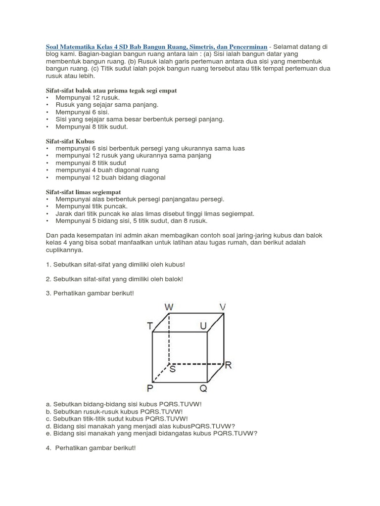 Soal Matematika Kelas 4 Sd Bab Bangun Ruang Simetris Dan Pencerminan
