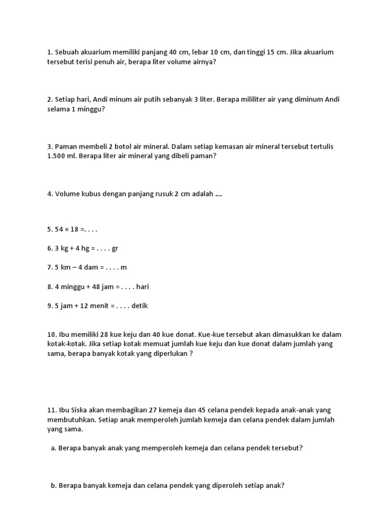 Soal Cerdas Cermat Matematika Sd Kelas 1 Guru Paud